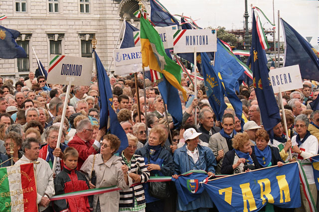 Raduno mondiale esuli istriani, Missoni, Illy, Codarin, Camber, Marucci Vascon, Menia, Maccanico, piazza Unità, De Feis, prefetto, Fini, De Vidovich, ex combattenti.