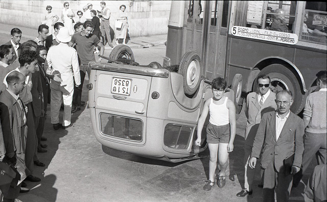 Via Rossini : Autovettura Belvedere rovesciata da Volkswagen