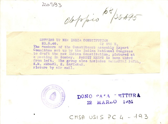 Foto dei membri dell'Assemblea costituente svoltasi il 23 agosto 1946 a Bombay e raffigurante tra i vari personaggi Pandit Nehru
