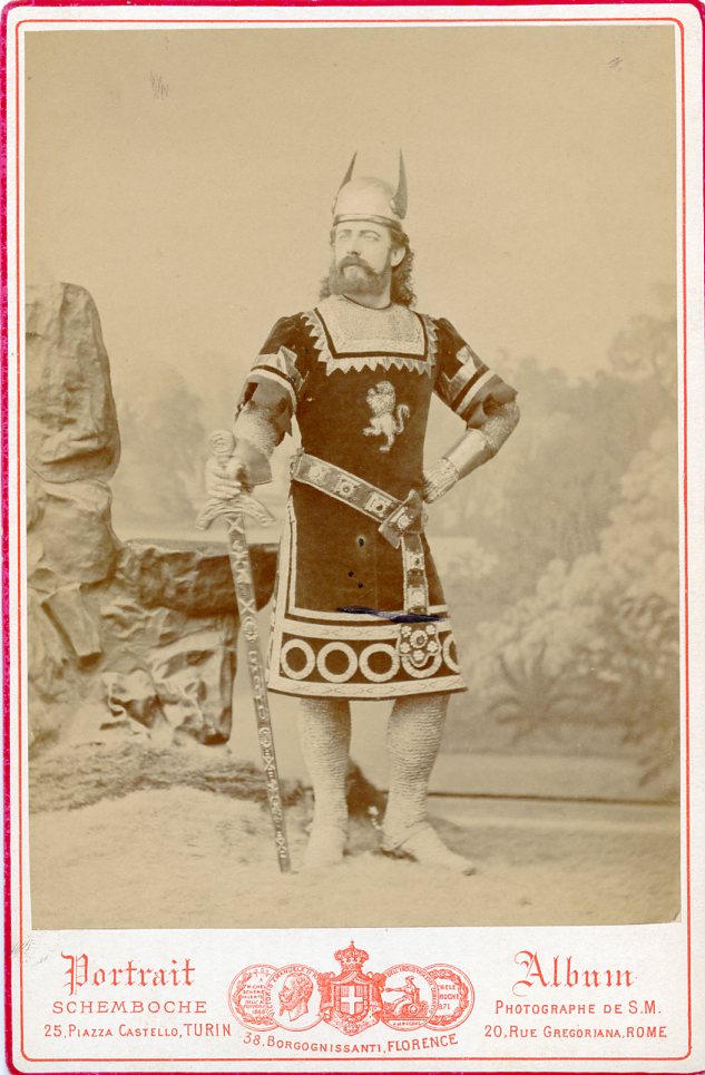 In costume nel ruolo di Friedrich von Telramund in "Lohengrin". A Trieste si è esibito al Teatro Comunale nel 1877 in "Gli Ugonotti", nel 1908 in "Il Battista", e nel 1912 in "Don Pasquale" e "L'elisir d'amore"; nel 1910 al Politeama Rossetti nel ruolo di Scarpia nella "Tosca"