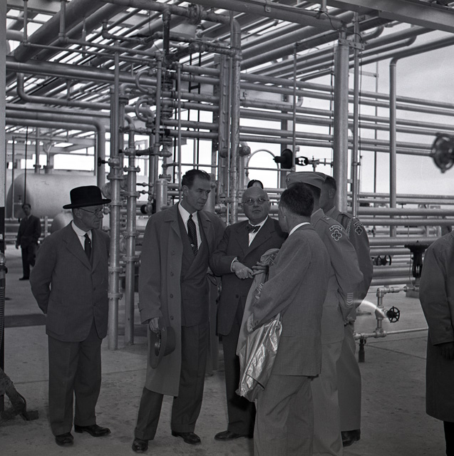 Inaugurazione dei nuovi impianti della raffineria Aquila di Zaule alla presenza delle autorità militari e civili di zona, del capo della missione ECA in Italia Leon Dayton e del Ministro del commercio italiano Ugo La Malfa