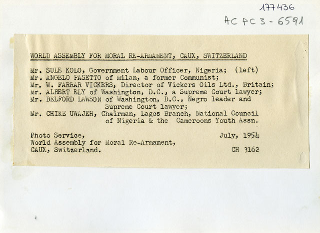 13 studenti universitari di Trieste con il tribuno si recano a Caux sur Montreux per partecipare alla conferenza del movimento del Riarmo Morale (o Movimento di Caux-sur-Montreux). Il sindaco partecipa agli incontri. Dalla sua installazione a Caux nel 1946, il movimento del Riarmo morale si impegna per la ricostruzione dell’Europa, riunendo gli ex belligeranti e organizzando conferenze internazionali.