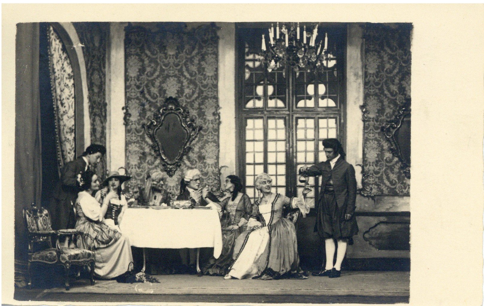Scene e attori dilettanti della commedia rappresentata dal Circolo Artistico di Trieste dal 4 al 6 aprile 1923, regia di Guido Hermet. Protagonisti: Orazio Sturli, Livia Rimini, Mariuccia Gerussi, Fabio Venezian, Dolores Tarabocchia, Aurelio Zuculin, Bice Randegger Richetti, Nanà Orel-Held, Alberto Riccoboni