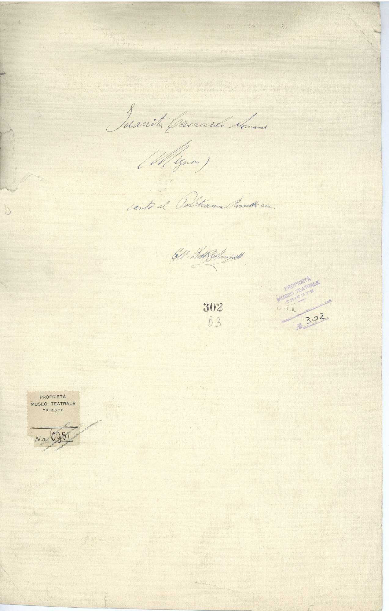 Proprietà Ente pubblico territoriale; Civico museo teatrale C. Schmidl