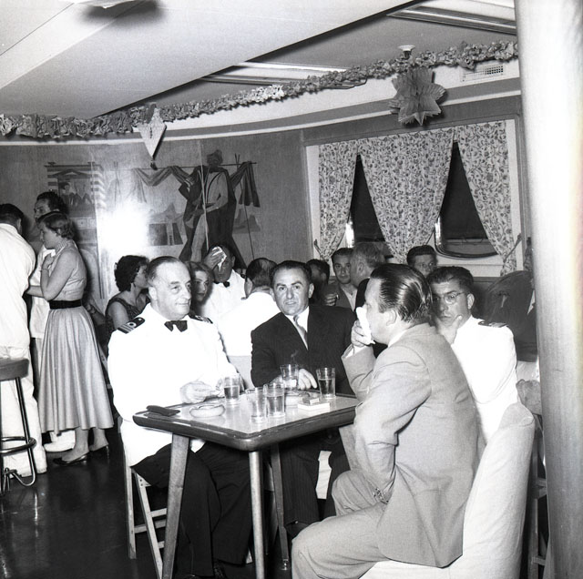 Riprese di un ballo mascherato in classe turistica a bordo della Motonave Africa.