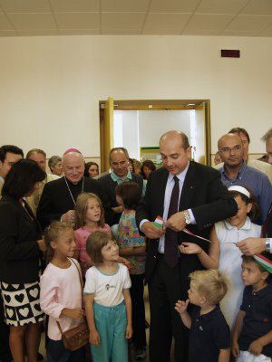Il Sindaco di Trieste Roberto Dipiazza assieme agli assessori comunali Angela Brandi e Giorgio Rossi, alla presenza del Vescovo di Trieste Mosignor Eugenio Ravignani, durante l'inaugurazione. Presenti anche i consiglieri comunali Michele Lobianco e Salvatore Porro.