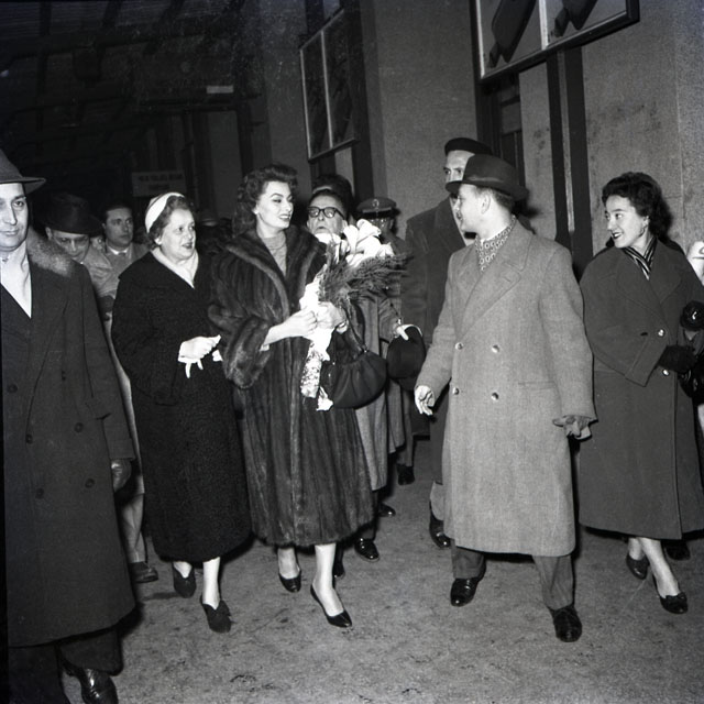 Giunta a Trieste con la sorella per partecipare a un ricevimento benefico dato in suo onore dalla Croce Rossa Italiana, Sophia Loren effettua un tour della città accompagnata anche dallo scultore Marcello Mascherini.