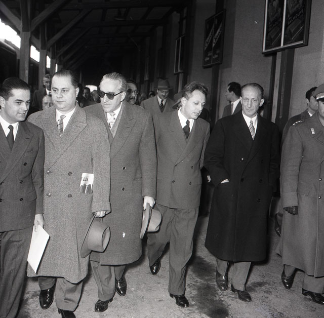 Mario Martinelli, ministro per il Commercio con l'estero, alla Stazione centrale.