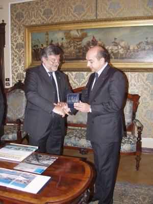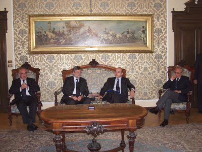 Il sindaco di Trieste con i rappresentanti della Massoneria triestina nel salotto azzurro del Municipio.