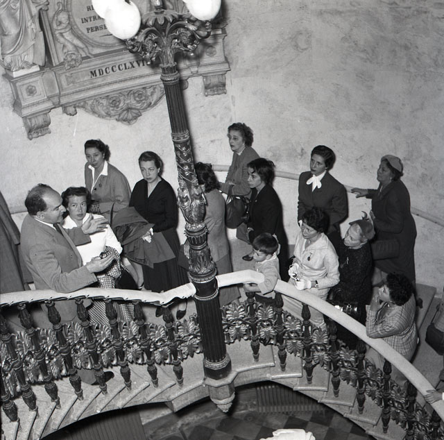 Congresso sulla laringologia nell'Aula magna dell'Università degli Studi, visita dei congressisti al museo Revoltella, ricevimento e ballo all'hotel Savoia Excelsior, visita alla raffineria Aquila.