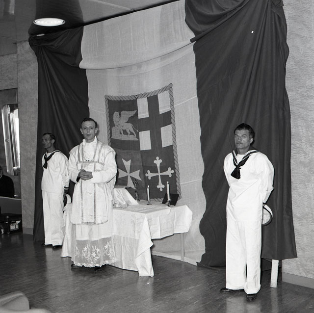 Celebrazione della Messa sulla nave Motonave Victoria.