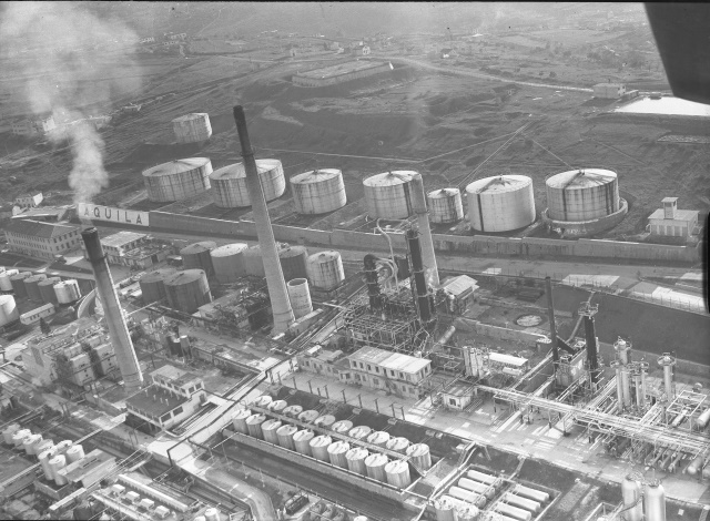 Fotografie aeree della raffineria Aquila e della piana di Zaule