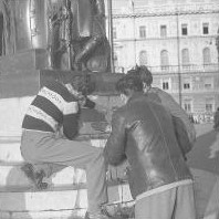 Preparativi per bandiere - P.zza Unità. Confini