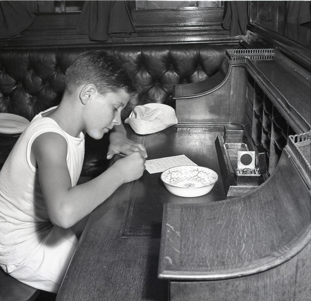 La nave scuola Giorgio Cini dell'Istituto Nautico di Venezia attraccata al molo Audace. Si tratta di un brigantino a tre alberi adibito a nave scuola dal Centro di Cultura marinara della Fondazione Cini e destinato ad accogliere 200 bambini di marinai e pescatori. Foto del comandante, la medaglia d'oro Giovanni Bardini, con alcuni visitatori. Riprese di un bambino alla scrivania, a bordo della nave.