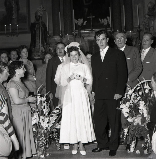 Jolanda Bersan e Orlando German, fidanzati triestini, vincono il concorso a premi 'Coroniamo un sogno d'amore'. Il servizio fotografico comprende la manifestazione al Castello di San Giusto, presentata da Mike Bongiorno e animata dal Quartetto Radar e dall'attrice Gabriella Cataldo e la cerimonia nuziale.