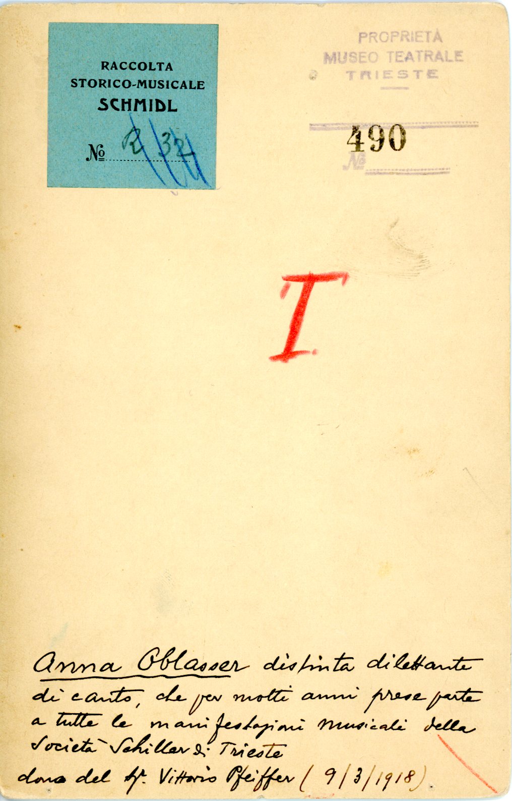 Proprietà Ente pubblico territoriale; Civico museo teatrale C. Schmidl; donazione; Vittorio Pfeiffer; 1918/03/09