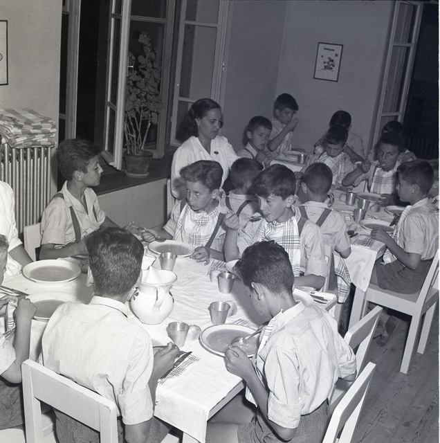 Colonia Istria dell'Opera per l'assistenza ai profughi giuliani e dalmati a Sappada. Esterni ed interni della colonia. Gruppi di bambini impegnati in varie attivita quotidiane. Foto di gruppo
