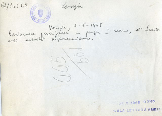 Cerimonia partigiani in Piazza S. Marco, di fronte alle autorità angloamericane