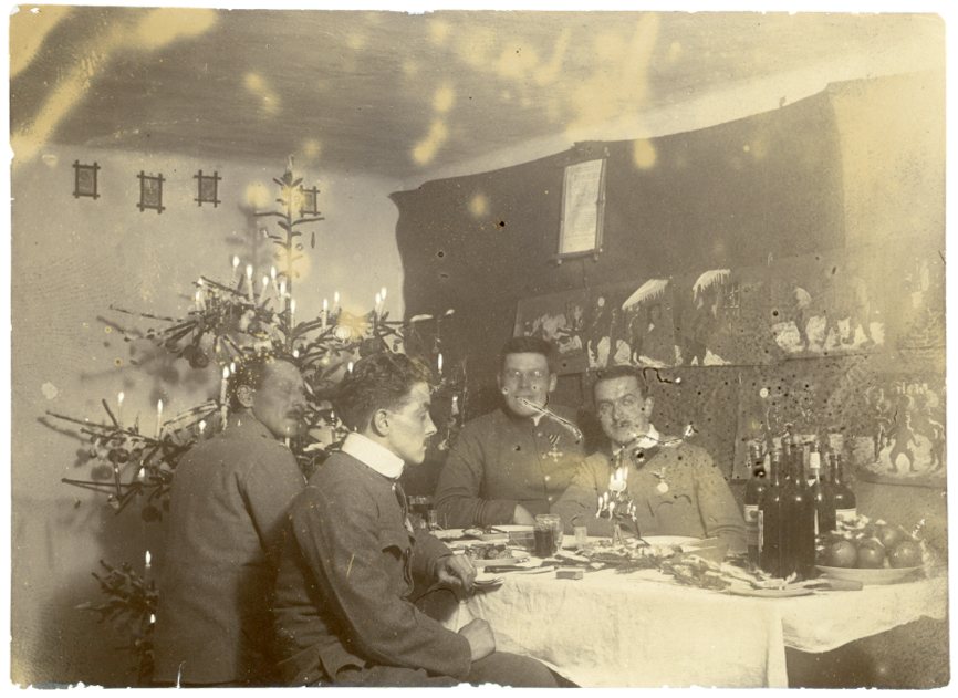 Francesco Pepeu a tavola con tre ufficiali decorati