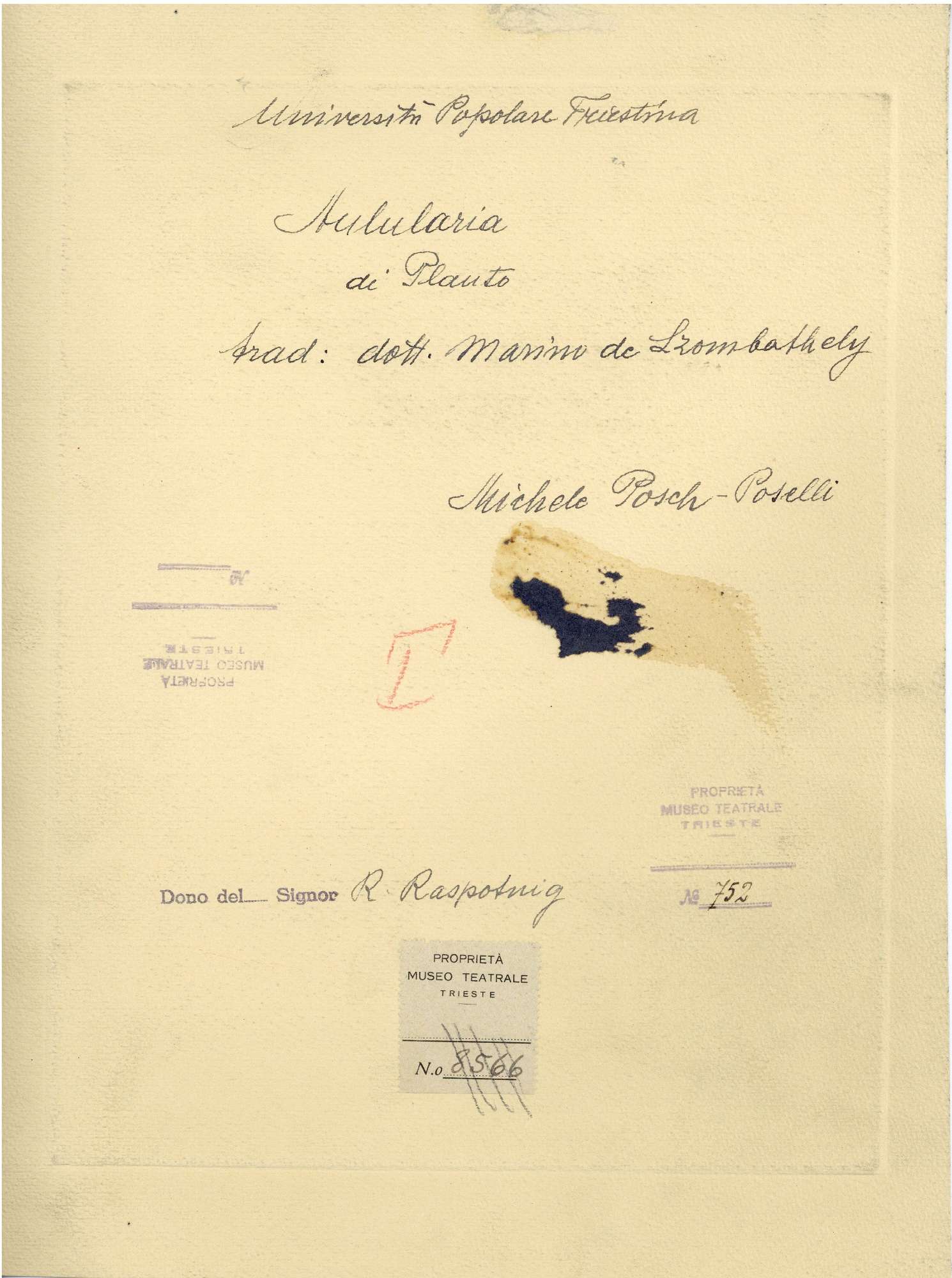Proprietà Ente pubblico territoriale; Civico museo teatrale C. Schmidl; donazione; Raspotnig, R.