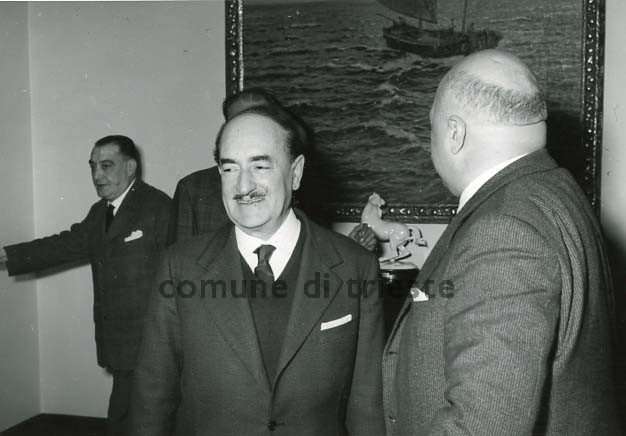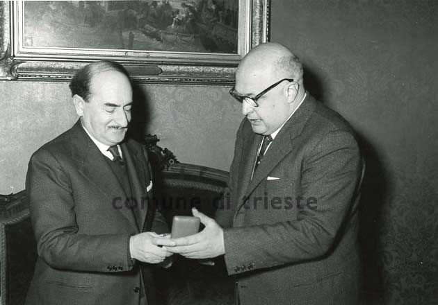 Il Sindaco Mario Franzil riceve in Municipio il Premio Nobel per la Poesia Salvatore Quasimodo accompagnato dal presidente del C.C.A.