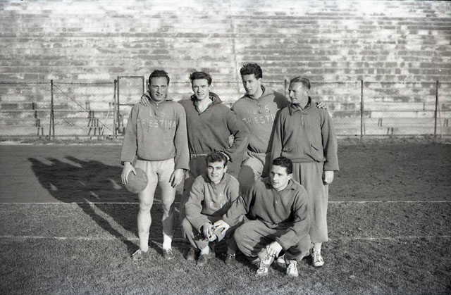 Il giornalista Dante di Ragogna, gia' capo dei servizi sportivi de Il Piccolo, intervista il ciclista Guido De Santi in allenamento con la U.S. Triestina calcio