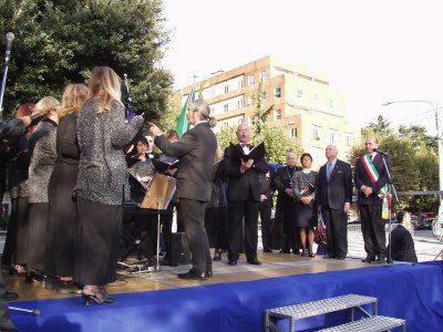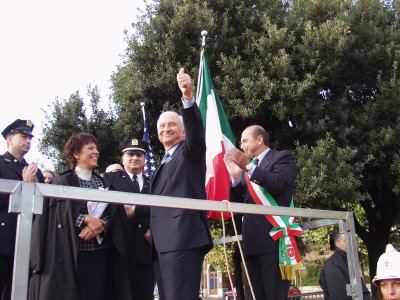 Il sindaco di Trieste Roberto Dipiazza con l'ambasciatore statunitense Melvin Sembler. presenti anche gli assessori Renzo Codarin e Fulvio Sluga, il vescovo eugenio Ravignani, i consiglieri comunali Paolo Di Tora, Michele Lobianco e Paolo Rovis