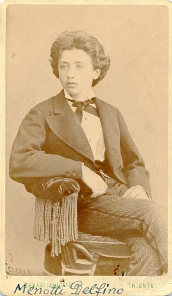 Nato a Fiumicello, Domenico Giovanni Battista Menotti, in arte Delfino Menotti, su consiglio di F. Faccio, intraprese gli studi musicali prima a Milano presso la scuola del maestro A. Sangiovanni poi a Trieste, dove riprese gli studi con G. Rota. Venne arrestato perché trovato in possesso di una lettera compromettente per G. Oberdan. Rimase in carcere cinque mesi, quindi venne processato e condannato a sei settimane di detenzione e all'esilio./pNel 1880 debuttò al teatro alla Pergola di Firenze nella Linda di Chamounix di G. Donizetti. Venne poi scritturato dal Colón di Buenos Aires, e Giuseppe Verdi, che lo aveva ascoltato a Milano, gli inviò lo spartito del Simon Boccanegra perché ne fosse il primo interprete in Argentina. Dopo una intensa attività nelle Americhe, in Europa e Russia, nel 1904 fu chiamato ad Odessa, per insegnare canto presso il conservatorio; qui sposò una sua allieva, Antonida Trouien. Nel 1920 Si stabilì a Trieste dove gli fu offerta la cattedra di canto presso il locale conservatorio e dove divenne anche direttore artistico del Teatro Verdi.