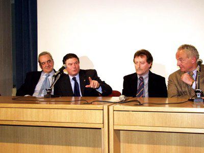 Presenti sul palco nell'auditorium del Museo Revoltella il sindaco Dipiazza, i figli Bruno e Tito, l'onorevole Gianni Rivera, l'allenatore Cesare Maldini, il giornalista Bruno Pizzul, il presidente della Camera di Commercio Paoletti