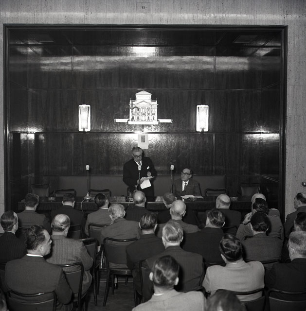 Il Cenacolo Triestino, accademia di studi economici e sociali, inaugura l'anno accademico nella sala della Camera di Commercio alla presenza del Vescovo, del Sindaco, del presidente della Provincia, del Commissario dei Governo, del generale comandante del Presidio Militare e del vice Questore. del rettore dell'Università. dei presidenti dell'Ente porto industriale, dei Magazzini Generali, del Console degli Stati Uniti.