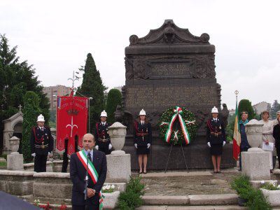 Roberto Dipiazza sindaco, Fulvio Sluga assessore, Franco Bandelli, Paolo Di Tora, Salvatore Porro e Alessia Rosolen consiglieri comunali partecipano alla deposizione di una corona d'alloro sul monumento dedicato agli Irredentisti Triestini