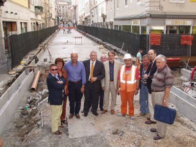 L'assessore comunale Giorgio Rossi con il consigliere comunale Michele Lobianco , ed il dirigente comunale Ashiku, assieme Franco Rigutti presidente dell'Associazione Commercianti al Dettaglio nel cantiere in via San Lazzaro.