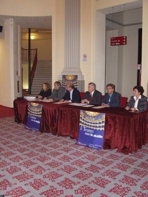 Il sindaco di Trieste Roberto Dipiazza con l'asssessore comunale Giorgio Rossi, il consigliere Paolo Rovis e l'architetto responsabile del progetto Luciano Celli durante la presentazione presso il Politeama Rossetti.