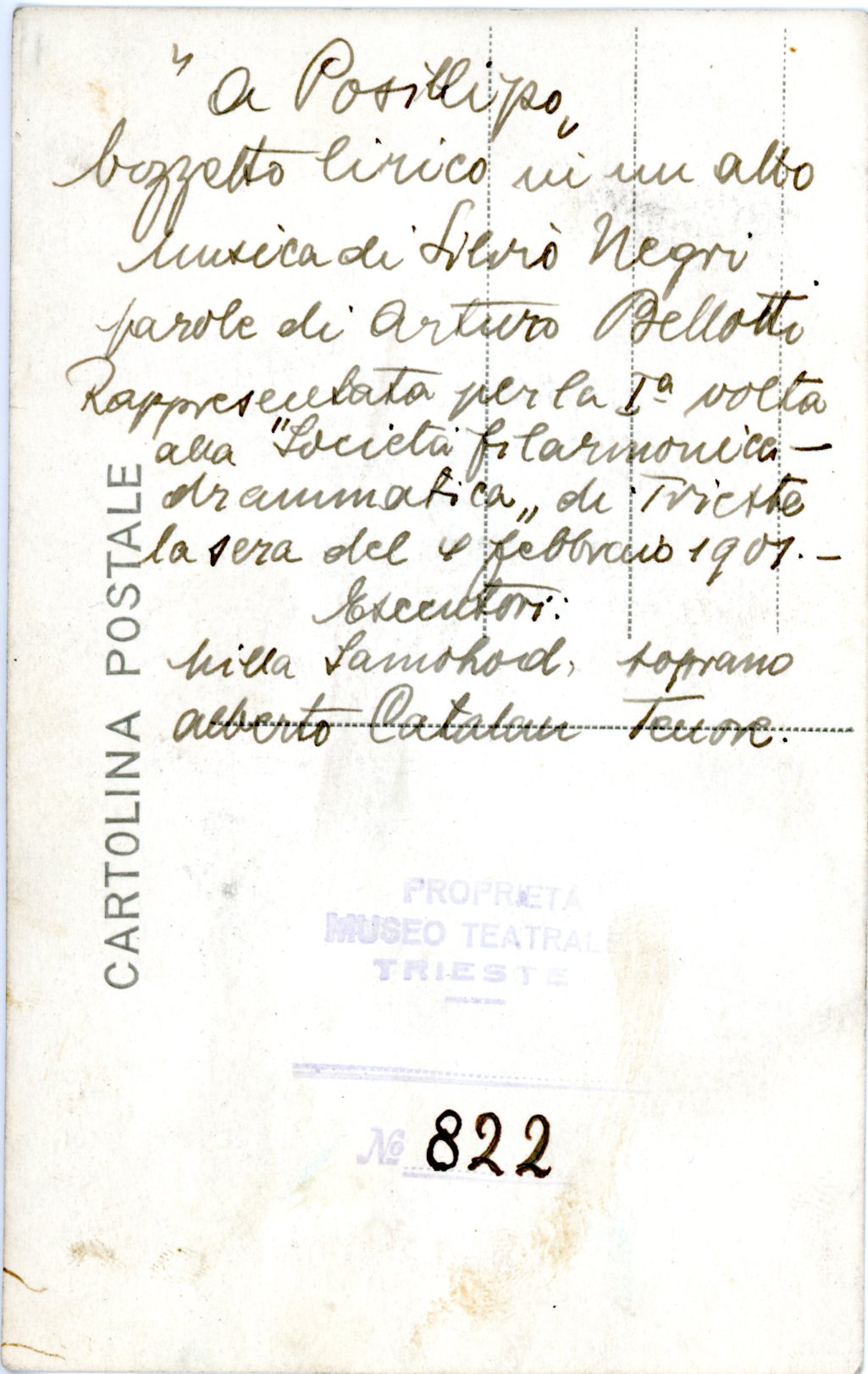 Bozzetto in un atto di Arturo Billotti, musica di Silvio Negri