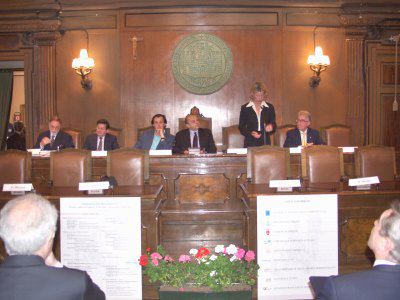 Gli assessori Renzo Codarin, Roberto Menia alla sua destra, Federica Seganti assessore regionale ed il presidente del Consiglio Comunale Bruno Sulli