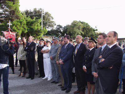 Il sindaco di Trieste Roberto Dipiazza con l'ambasciatore statunitense Melvin Sembler. presenti anche gli assessori Renzo Codarin e Fulvio Sluga, il vescovo eugenio Ravignani, i consiglieri comunali Paolo Di Tora, Michele Lobianco e Paolo Rovis