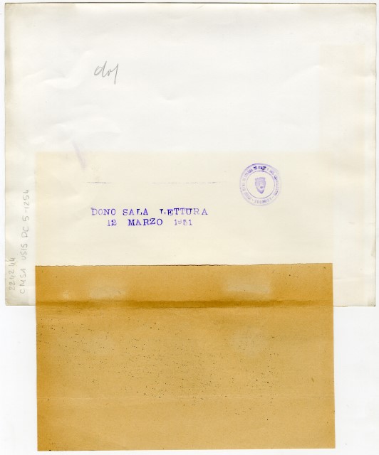 Proprietà Ente pubblico territoriale; Civici musei di Storia ed Arte; donazione; Sala di lettura americana; 1951/03/12