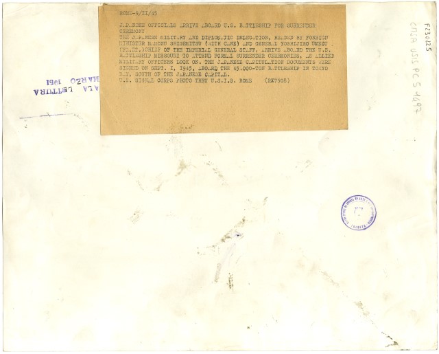 Japanese officials arrive aboard U. S. battleship for surrender