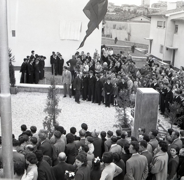 In località Chiarbola superiore, alla presenza del vescovo mons. Santin, di tutte le autorità locali e del sottosegretario alla presidenza del Consiglio on. Scalfaro, ha avuto luogo l'inaugurazione del Villaggio giuliano e dalmata realizzato dall'Opera per l'assistenza ai profughi giuliani e dalmati (da: Il Corriere dei Trieste, 9 maggio 1954). Nell'occasione viene scoperta una targa in memoria di Oscar Sinigaglia, morto l'anno precedente, già fondatore e presidente dell'Opera profughi. L'inaugurazione fa seguito ad un'altra cerimonia svoltasi in onore di Teodoro Mayer, con lo scoprimento di una lapide nello stabile di via San Francesco 4 (da: Trieste 1900-1999. Cent'anni di storia, v. 6, p. 284).