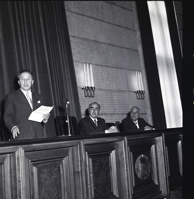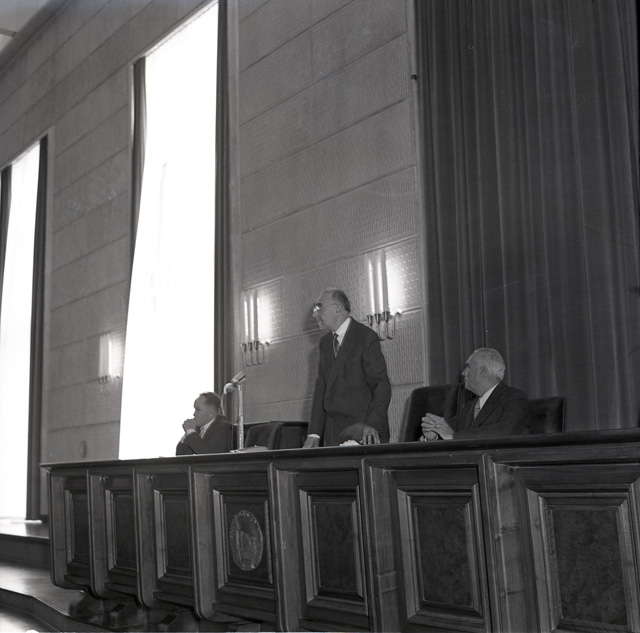 37. Congresso della Societa italiana di fisica nell'Aula Magna dell'Universita di Trieste. Presenti all' inaugurazione il conte di Carrobbio, capo della missione italiana; il presidente di Zona, prof. Palutan; il sindaco ing. Bartoli; mons. Gligo in rappresentanza del vescovo; il prof. Rubini, sovraintendente scolastico