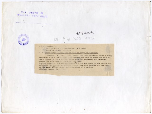 I soldati inglesi entrano vittoriosi a Prome, nei pressi del tempio protetto dalle statue dei Chinthe, creature mitologiche simili al leone.