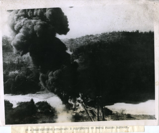 Burma R.A.F. Beaufighters bomb Japanese oil pipe line