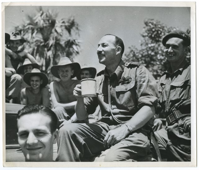 Il comandante J.H. Harris, in un momento di pausa, assieme ai soldati di un reggimento della RAF (Royal Air Force) in Birmania