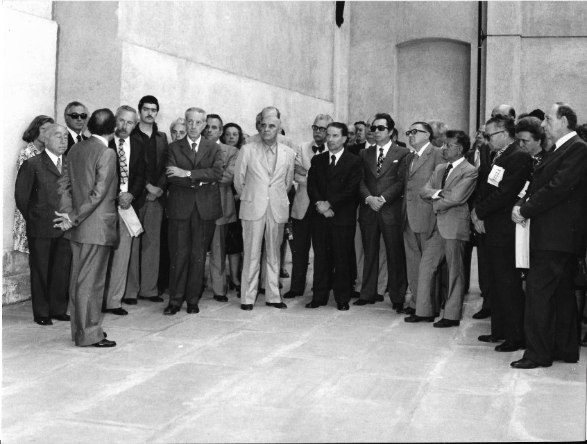 Serie di positivi con allegato cartiglio dattiloscritto: Cerimonia per la sistemazione della scultura "I Martiri" di Marcello Mascherini (22/6/75)