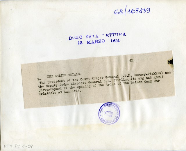 II presidente del tribunale militare H.P.M. Berney-Ficklin con il giudice e avvocato generale C.L. Stirling