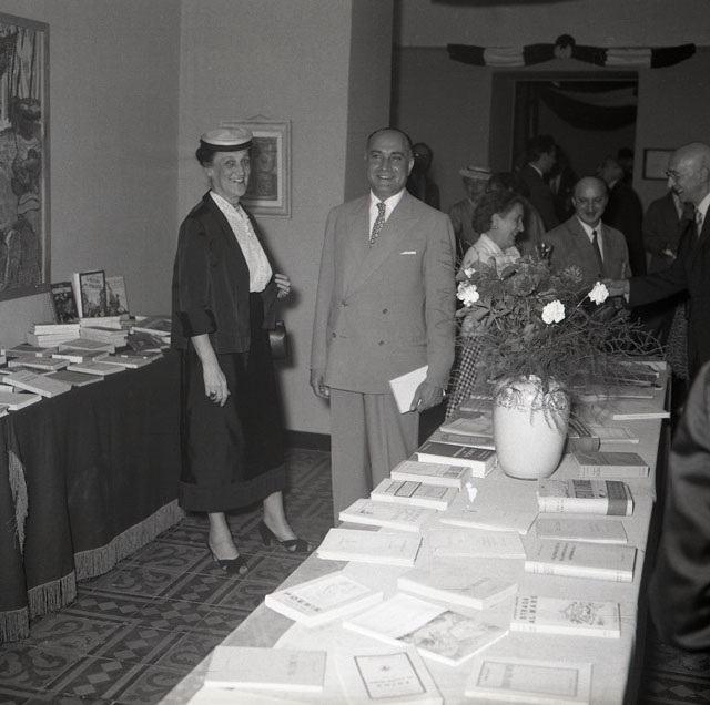 Inaugurazione della Settimana Vallecchi per il libro italiano, dal 12 al 20 giugno 1954, promossa dalla casa editrice Attilio Vallecchi di Firenze. L'inaugurazione avviene alla presenza di Giani Stuparich, Virgilio Svevo, Livia Veneziani Svevo. Il comitato organizzativo è presieduto da Lucia Tranquilli.La rassegna è completata dall'esposizione di quadri di De Pisis, Rosai, Campigli, Mafai, Guidi, Birolli e dai triestini Daneo, Devetta, Perizi, Predonzani e Righi.Tratto da Il Giornale di Trieste, 13.06.1954