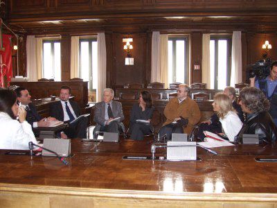 L'assessore comunale Claudia D'Ambrosio, il presidente del Consiglio comunale Bruno Sulli ed il Vicepresidente del Consiglio regionale del FVG Giulio Staffieri, durante l'incontro con il presidente Giuseppe Trieste ed altri rappresentanti del Fondo Italiano Abbattimento Barriere Architettoniche ,