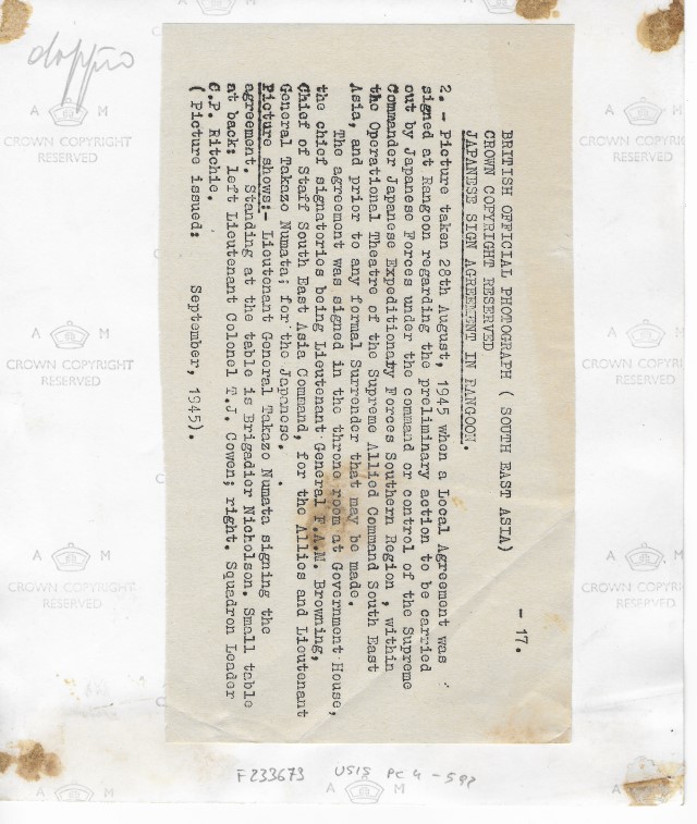 1945/08/28; Yangon; Birmania