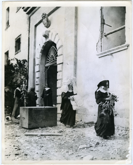 CLEANING UP AT FAICCHIO - Italian nuns carry odds and ends which remaiined in their home at Faicchio, Italy, after it was shellod by the Germans