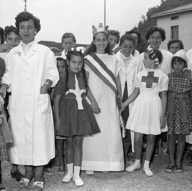 Visita del vescovo Santin alla colonia CRI di Tolmezzo